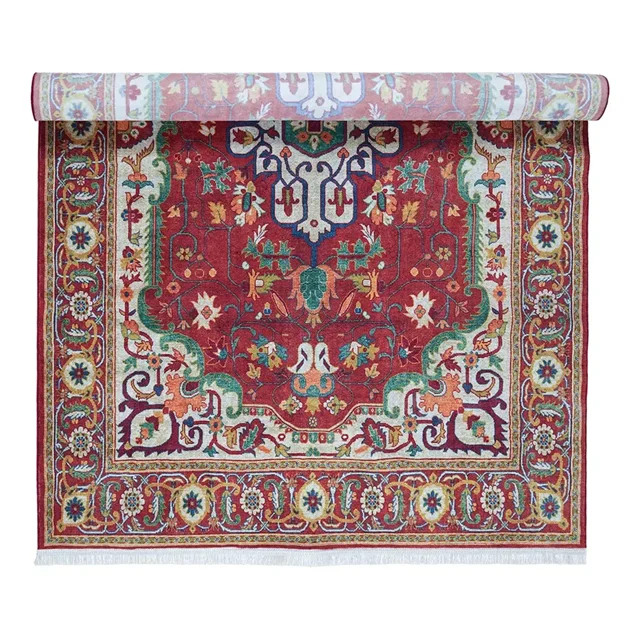 فرش محتشم کهنه نما 1000 شانه کد 100628 زمینه زرشکی (غیربرجسته)