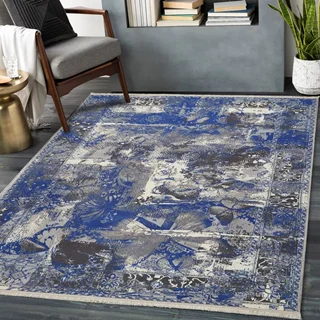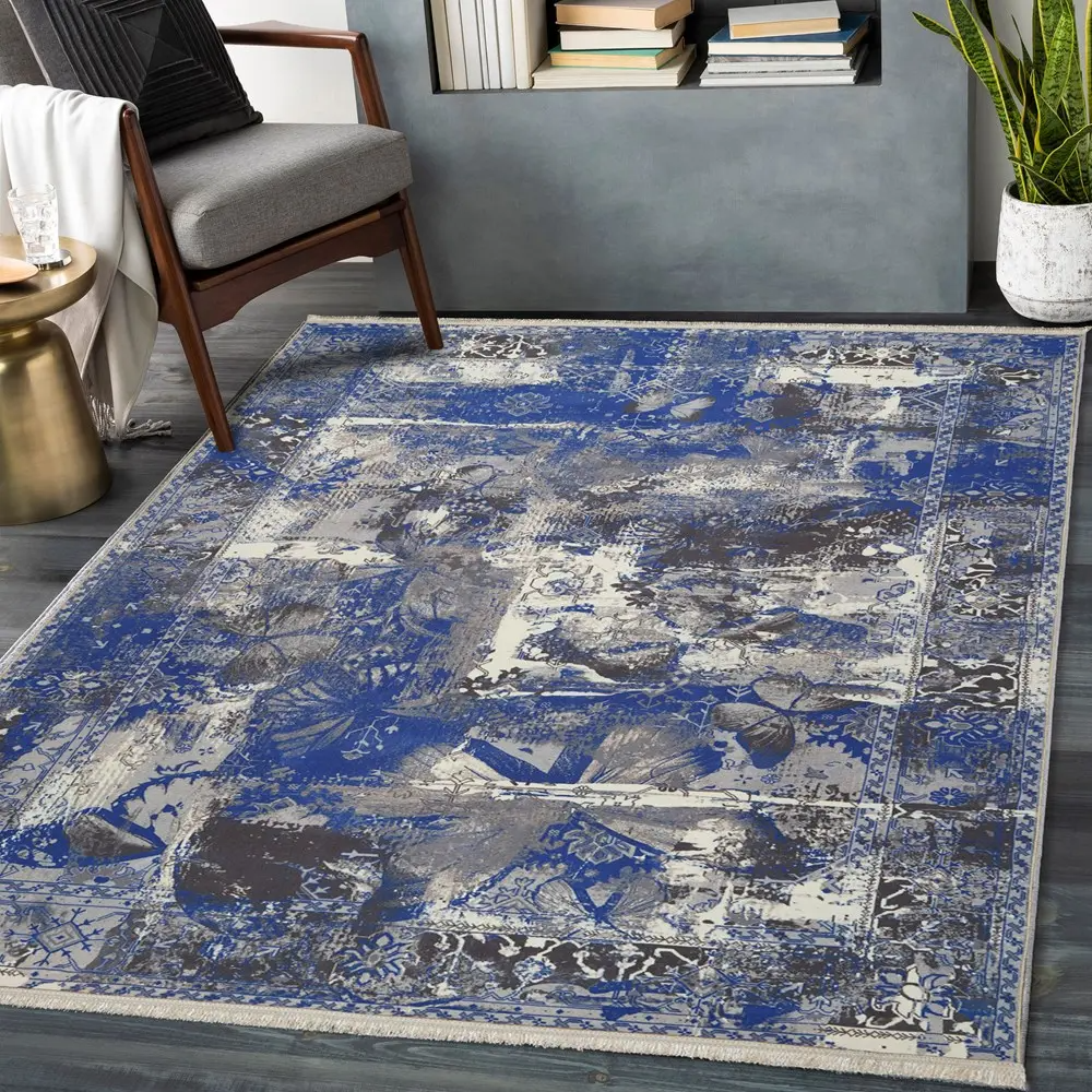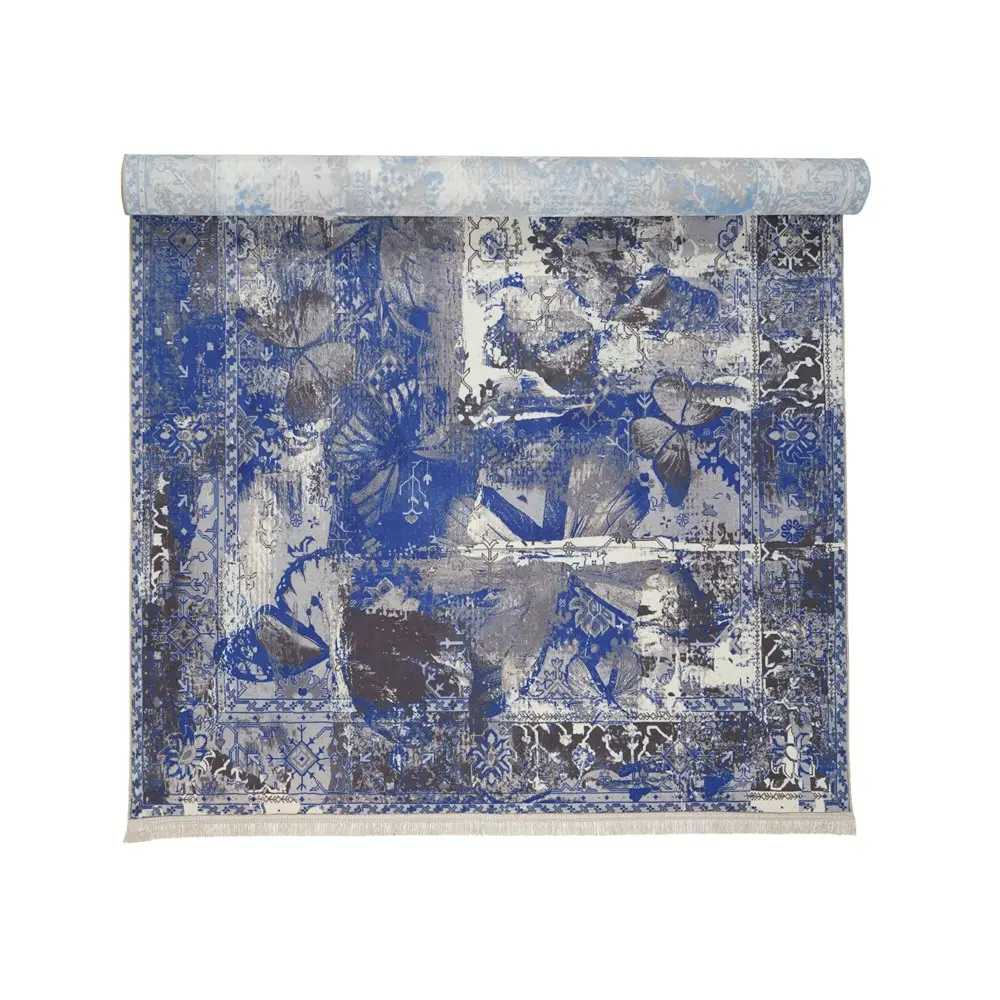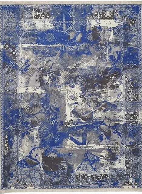 فرش محتشم کهنه نما 1000 شانه کد 100629 زمینه آبی (غیربرجسته)