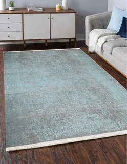 فرش محتشم کهنه نما 1000 شانه کد 100636 زمینه فیروزه ای (غیربرجسته)