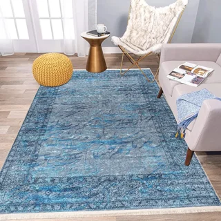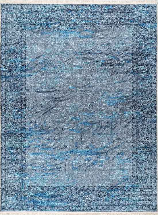 فرش محتشم کهنه نما 1000 شانه کد 100642 زمینه آبی (غیربرجسته)