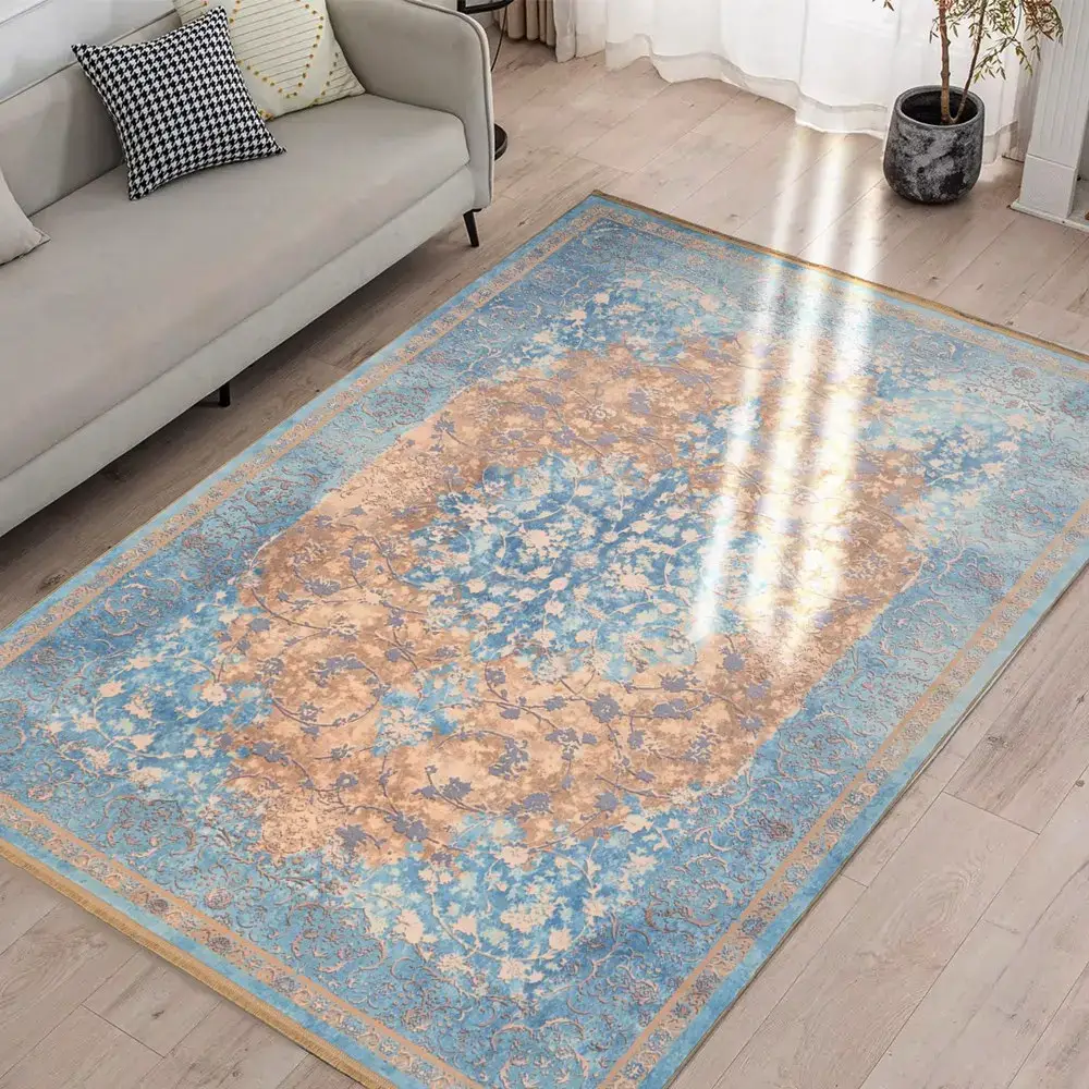 فرش محتشم کهنه نما 1000 شانه کد 900448 زمینه آبی (غیربرجسته)
