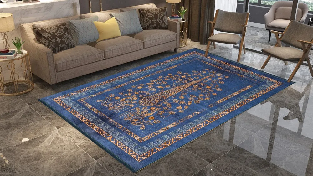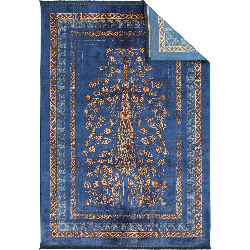 فرش محتشم کهنه نما 1000 شانه کد 900455 زمینه سورمه ای (غیربرجسته)