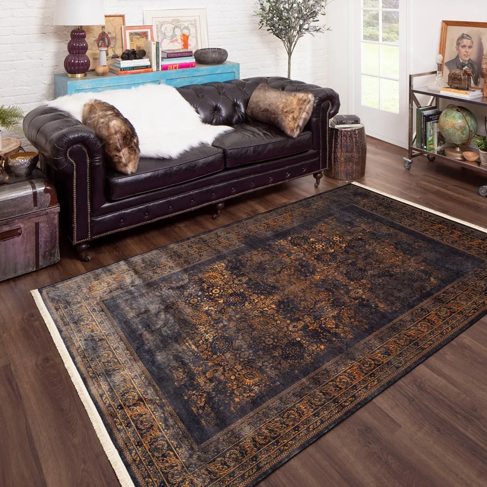 فرش محتشم کهنه نما 1000 شانه کد 900456 زمینه مشکی (غیربرجسته)