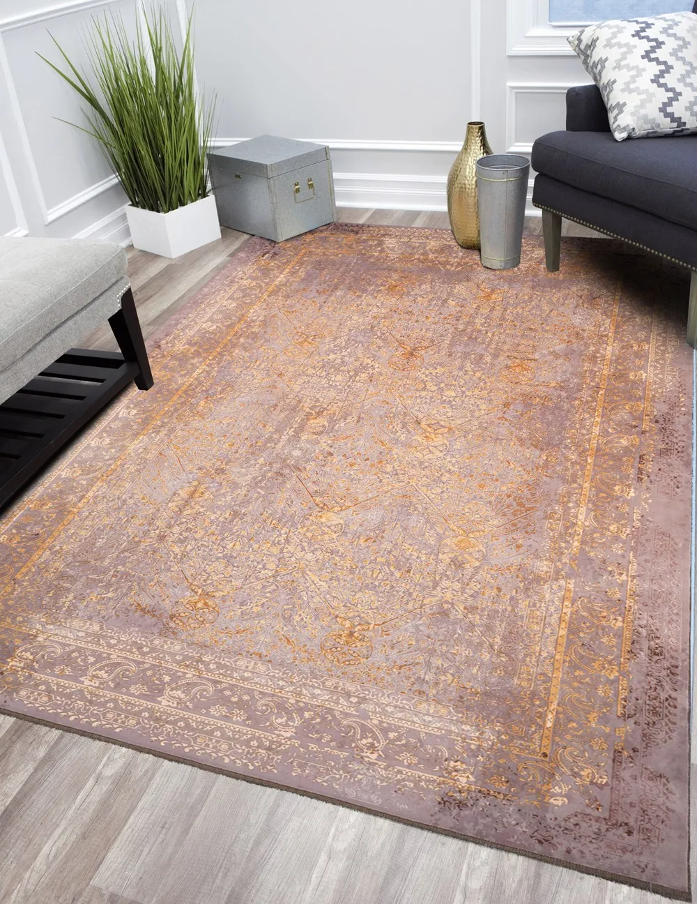 فرش محتشم کهنه نما 1200 شانه کد 300600 زمینه خاکستری (غیربرجسته)