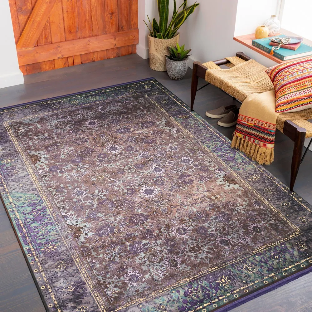 فرش محتشم کهنه نما 1200 شانه کد 300609 زمینه خاکستری (غیربرجسته)