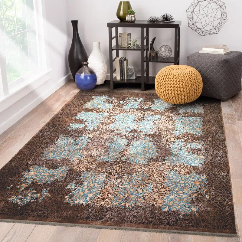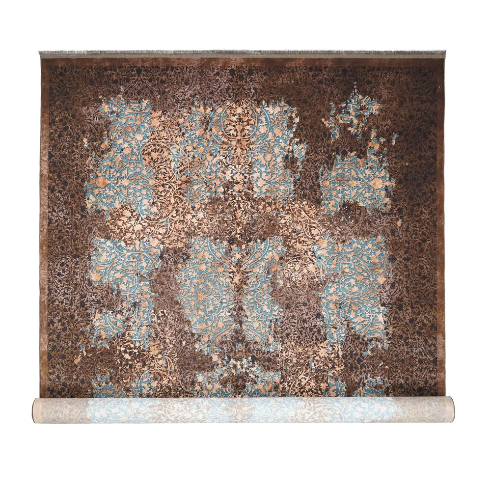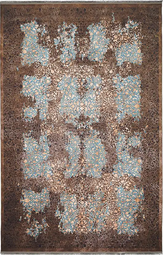 فرش محتشم کهنه نما 1200 شانه کد 300617 زمینه قهوه ای (غیربرجسته)