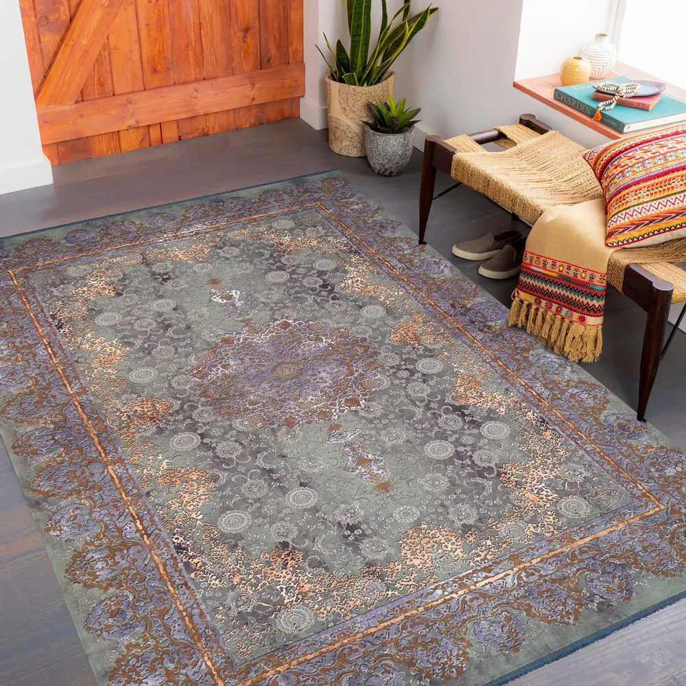 فرش محتشم کهنهنما 1200 شانه کد 300619 زمینه سبز، نمادی از آرامش، تازگی و هماهنگی با طبیعت است. رنگ سبز این فرش با جلوهای دلنشین، فضا را روشن و سرزنده میکند و بهویژه برای دکوراسیونهایی با رنگهای خنثی یا چوبی، جلوهای چشمگیر به همراه دارد.طرح کهنهنمای این فرش، با الهام از اصالت هنر ایرانی، ظاهری خاص و مدرن ایجاد کرده و حس نوستالژی و آرامش را همزمان منتقل میکند. بافت 1200 شانه و استفاده از نخهای باکیفیت، ظرافت نقشها و دوام فرش را تضمین کرده و استفاده از آن را برای فضاهای پرتردد مانند پذیرایی و نشیمن بسیار مناسب میسازد.فرش محتشم زمینه سبز برای افرادی که به دنبال ایجاد حس طبیعت و هماهنگی در منزل خود هستند، انتخابی هوشمندانه است. این فرش علاوه بر زیبایی بصری، با رنگ آرامشبخش و طراحی اصیلش، فضایی گرم، طبیعی و چشمنواز را در خانه شما به وجود میآورد و جلوهای ماندگار از سلیقه و اصالت را به نمایش میگذارد.