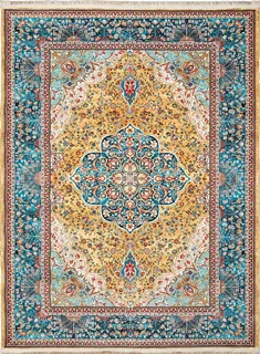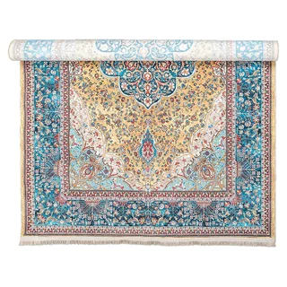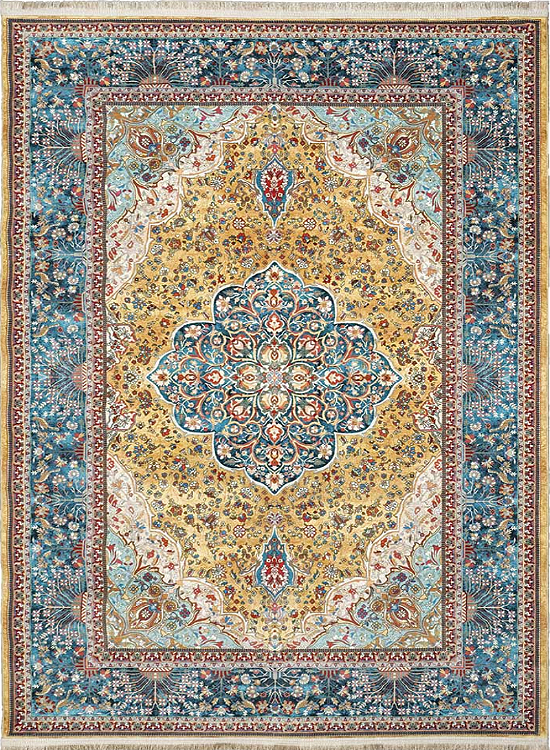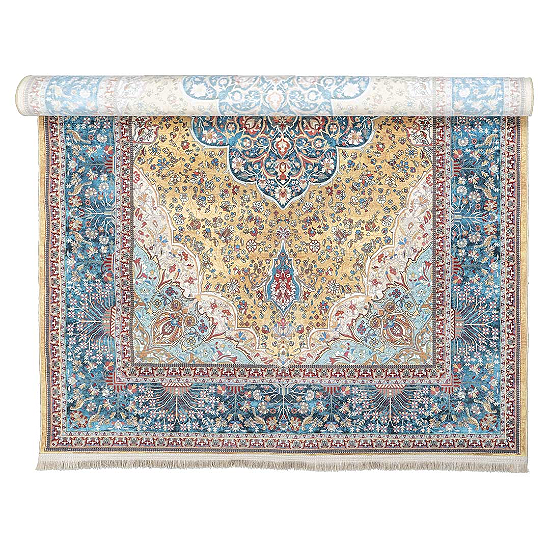 فرش محتشم 1000 شانه طرح هریس زمینه خردلی (غیربرجسته)