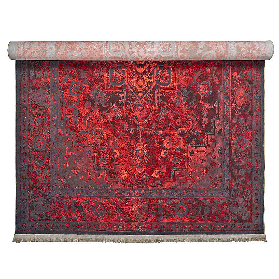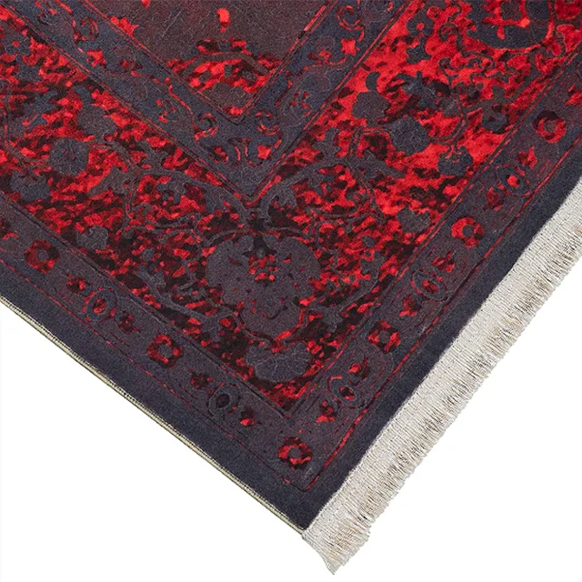 فرش محتشم 1000 شانه طرح هریس زمینه لاکی (غیربرجسته)