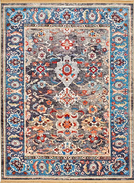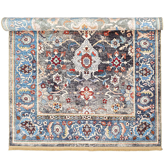 فرش محتشم 1000 شانه طرح هندی زمینه خاکستری (غیربرجسته)