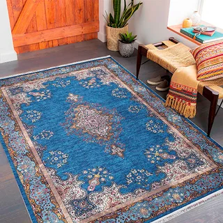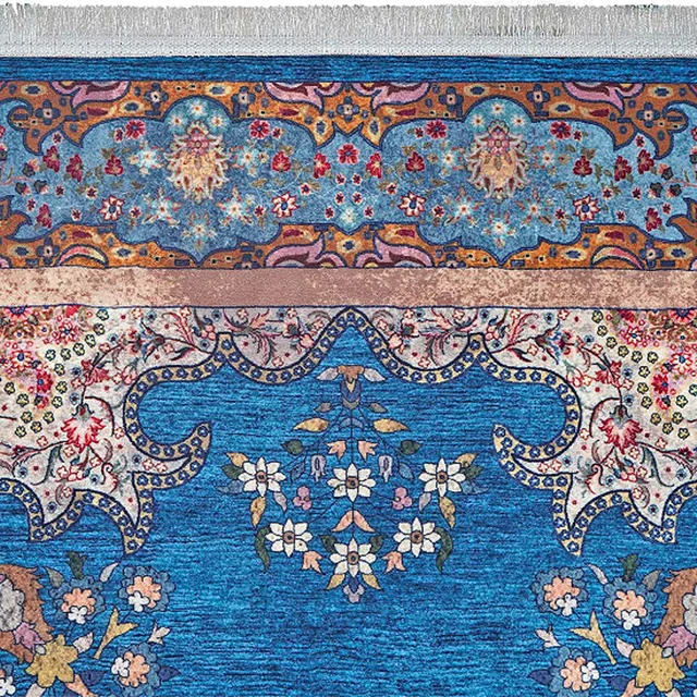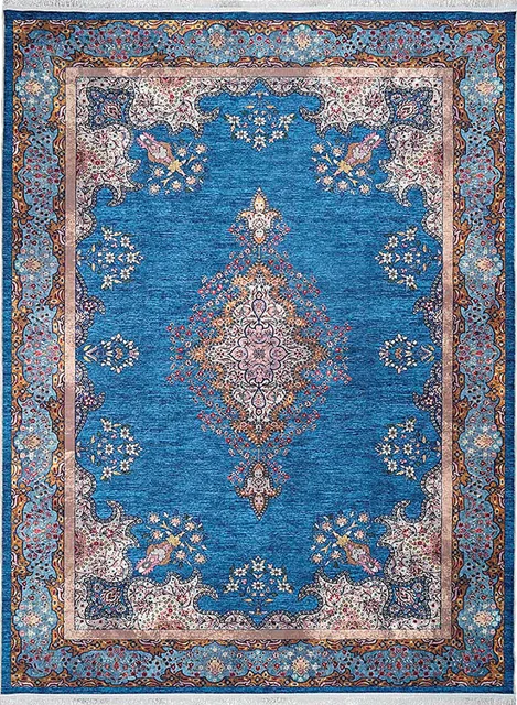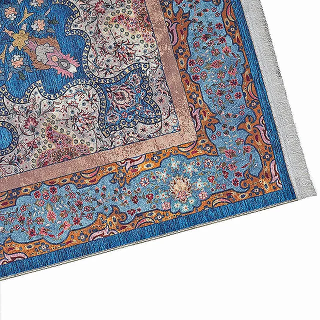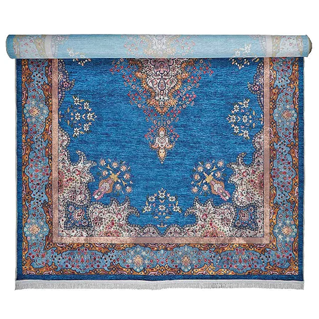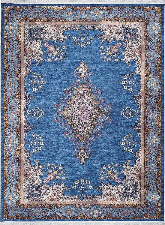 فرش محتشم 1000 شانه کد 100361 زمینه آبی کاربنی (غیربرجسته)