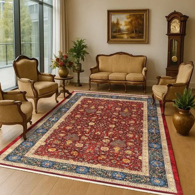 فرش محتشم 1000 شانه کد 25CS0330 زمینه لاکی (غیربرجسته)