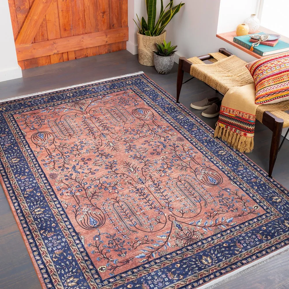 فرش محتشم 1000 شانه کلکسیون سنتی کد 100352 زمینه آجری (غیربرجسته)