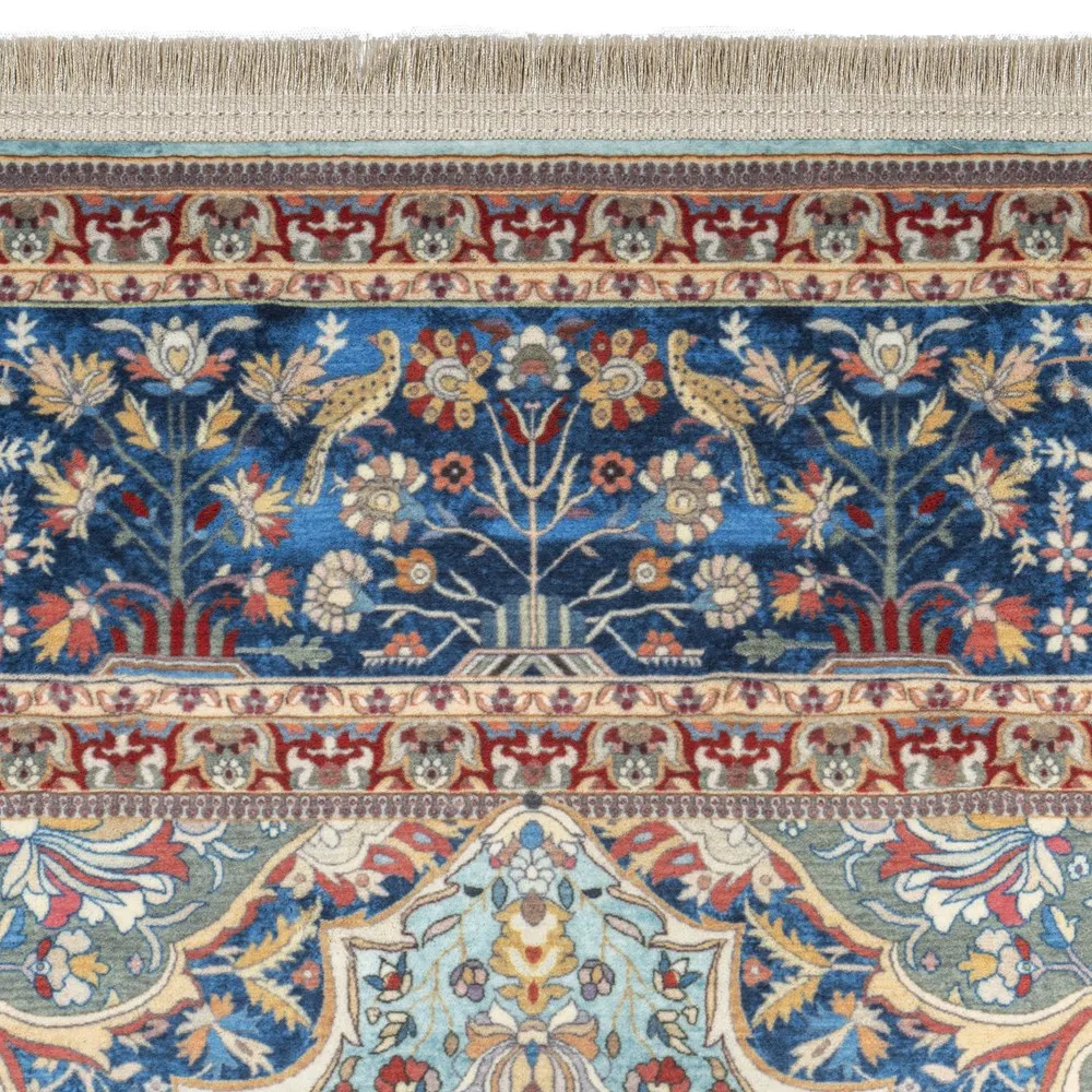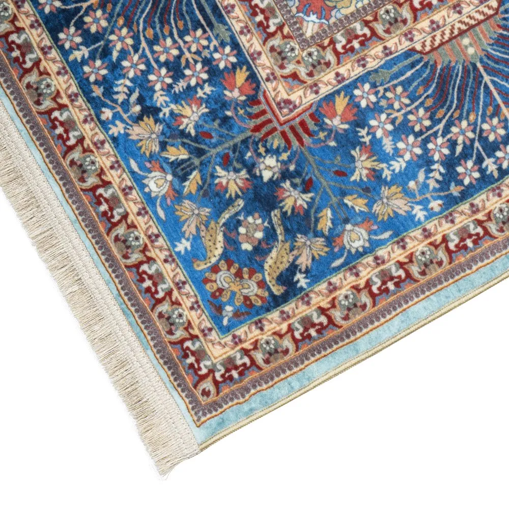 فرش محتشم 1000 شانه کلکسیون سنتی کد 100353 زمینه سبزآبی (غیربرجسته)