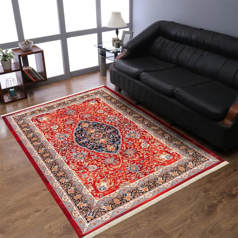 فرش محتشم 1000 شانه کلکسیون سنتی کد 25CS0130 زمینه قرمز (غیربرجسته)
