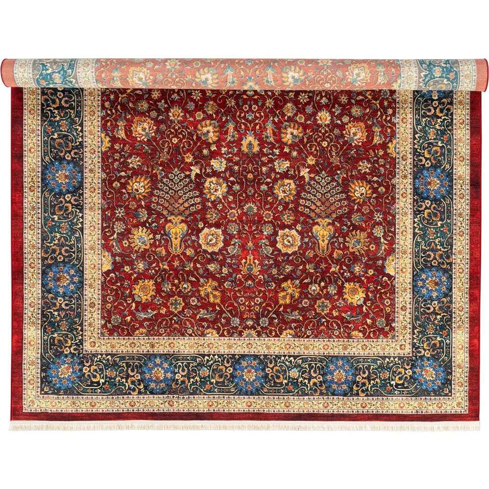 فرش محتشم 1000 شانه کلکسیون سنتی کد 25CS0330 زمینه لاکی (غیربرجسته)