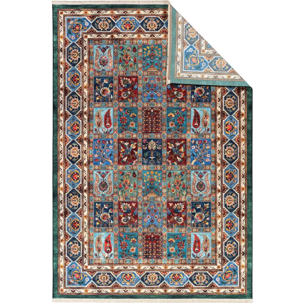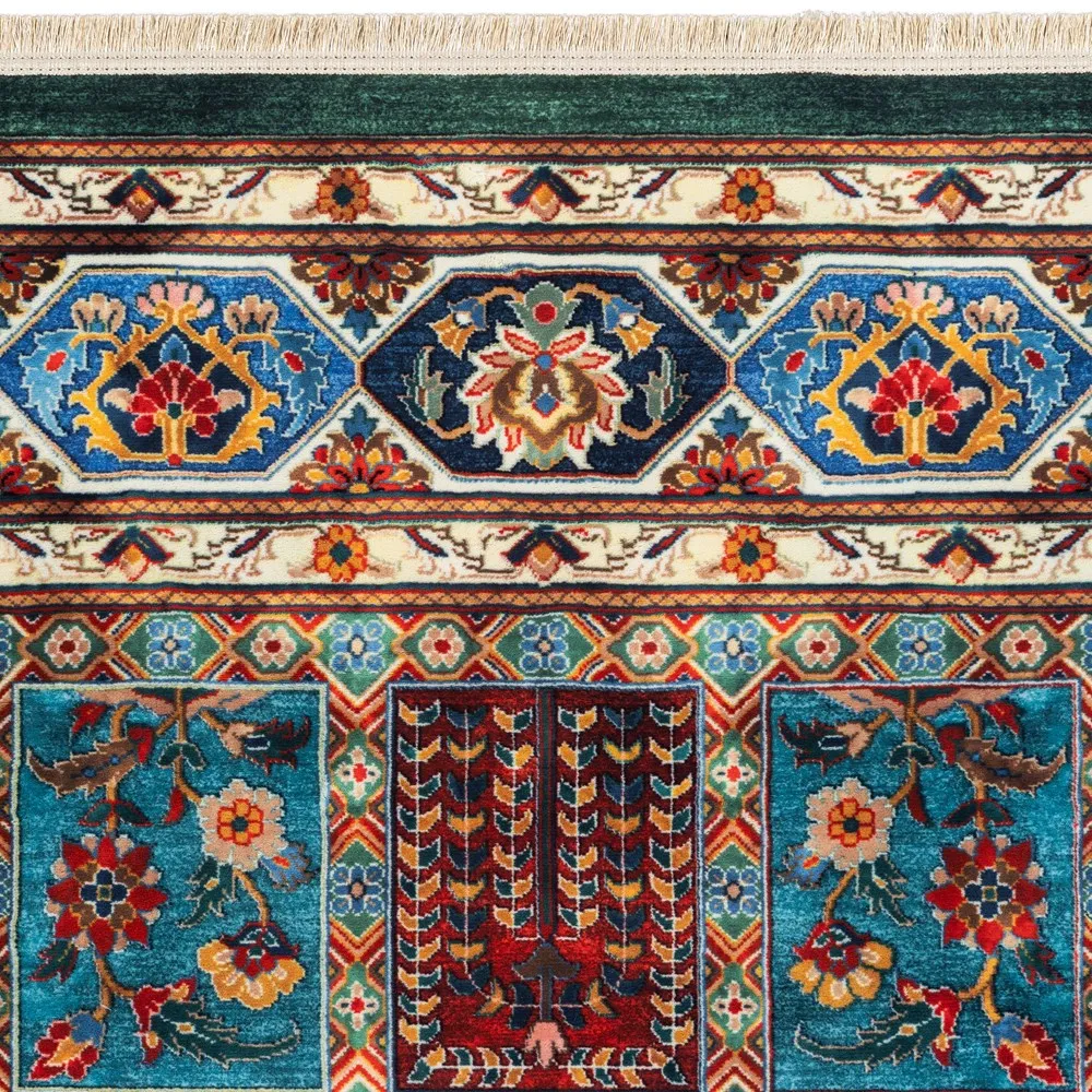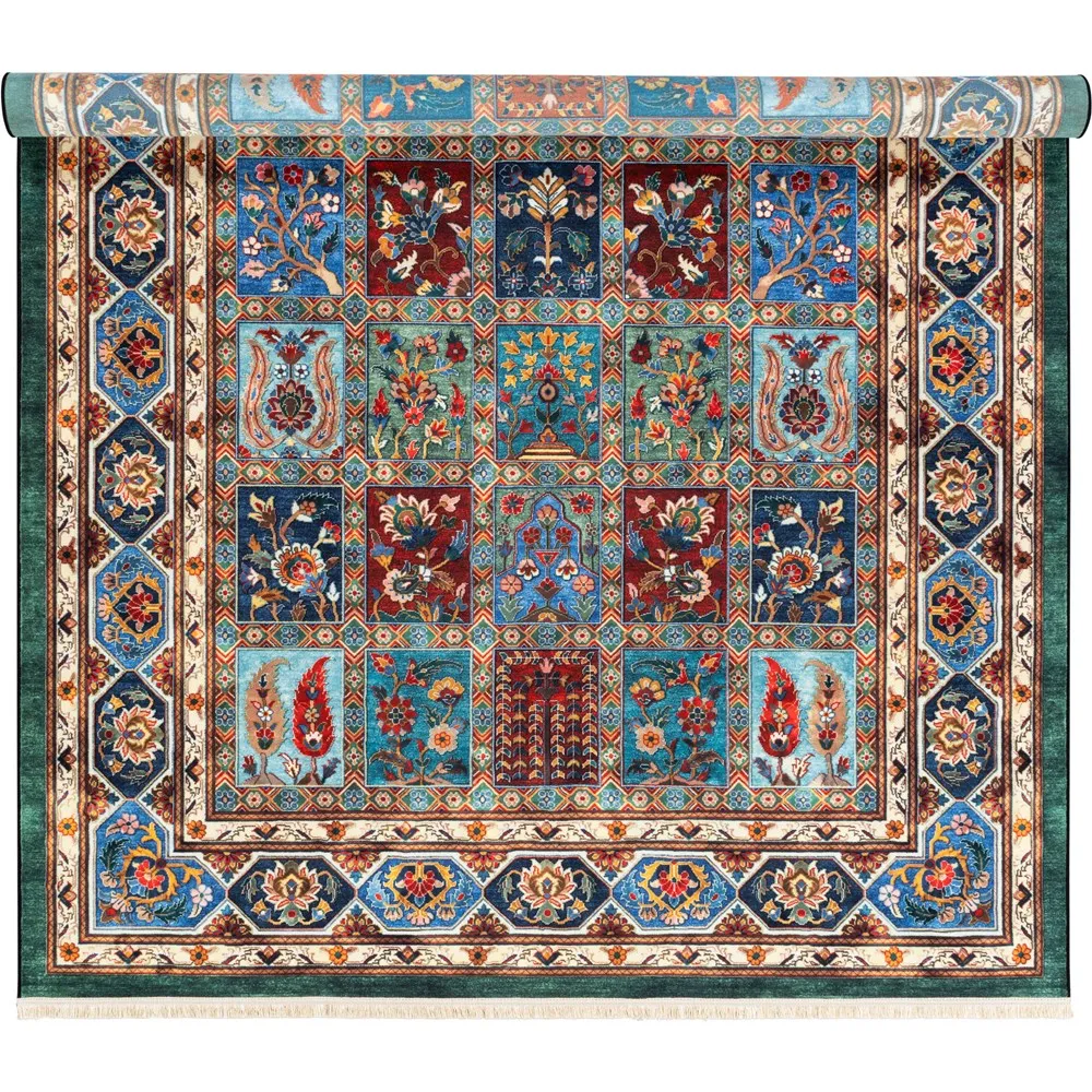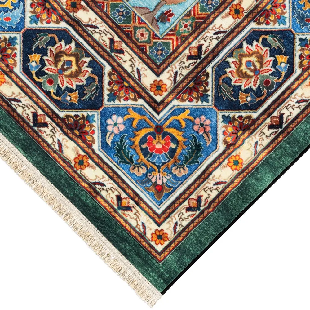 فرش محتشم 1000 شانه کلکسیون سنتی کد 25CS0380 زمینه سبز (غیربرجسته)
