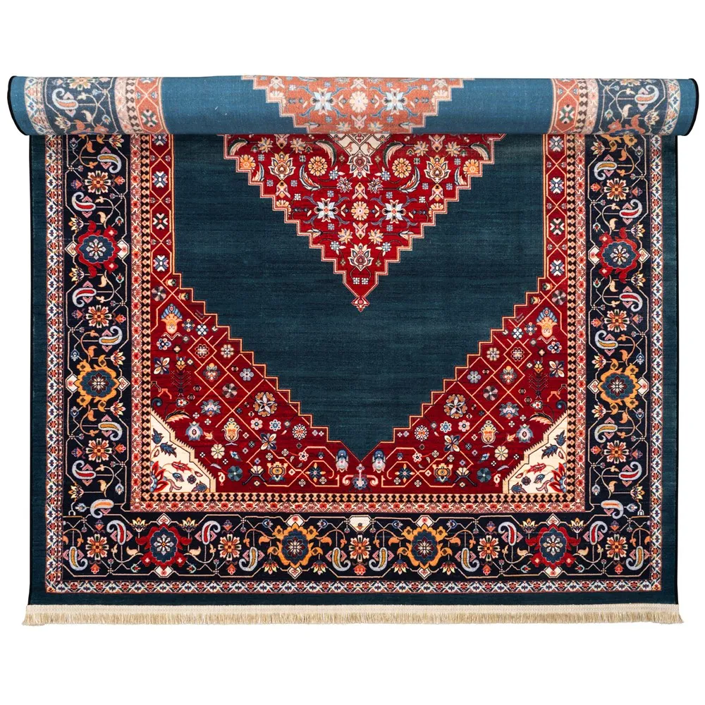 فرش محتشم 1000 شانه کلکسیون سنتی کد 900404 زمینه سبز (غیربرجسته)