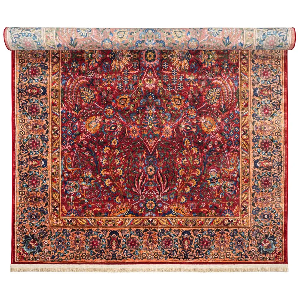 فرش محتشم 1000 شانه کلکسیون سنتی کد 900409 زمینه زرشکی (غیربرجسته)