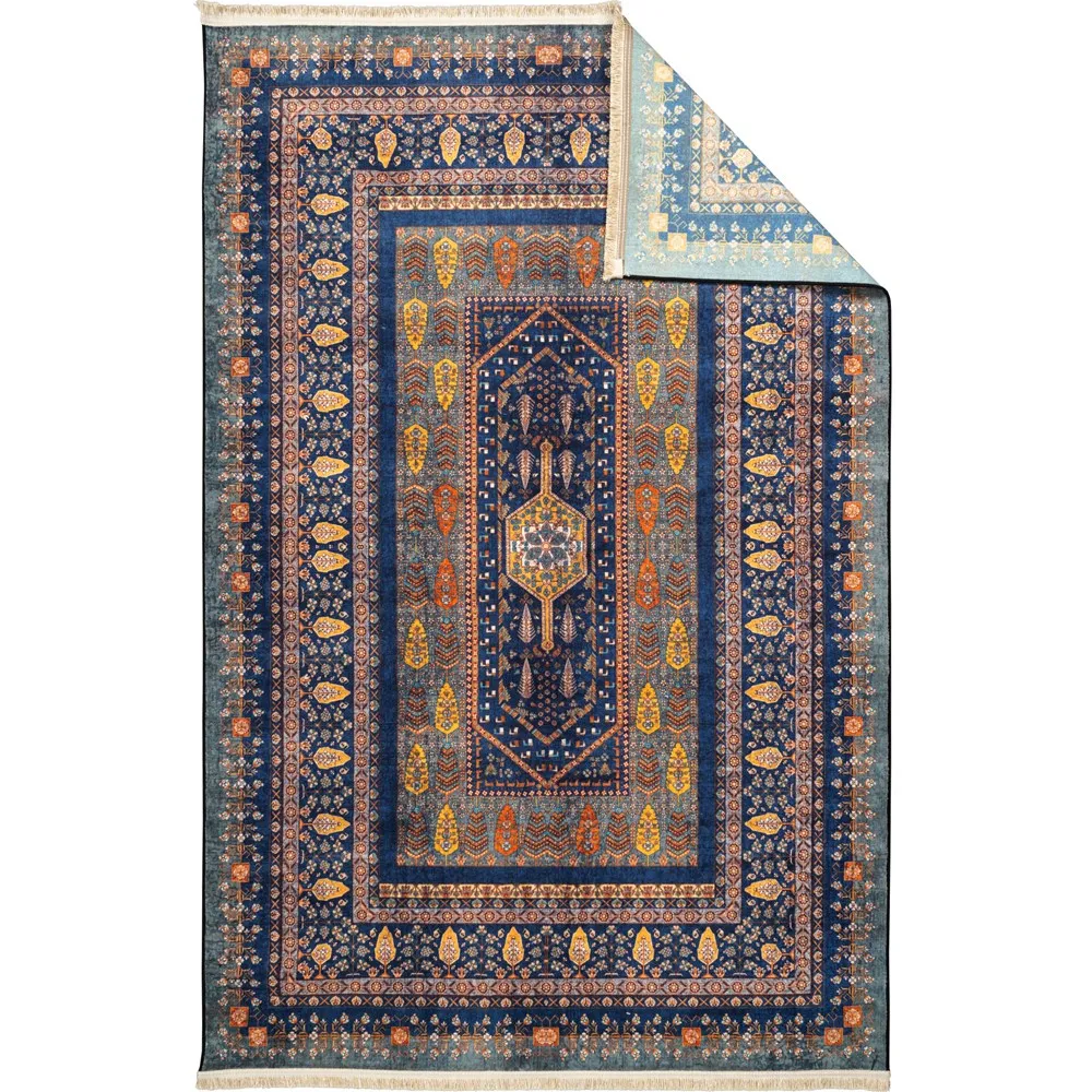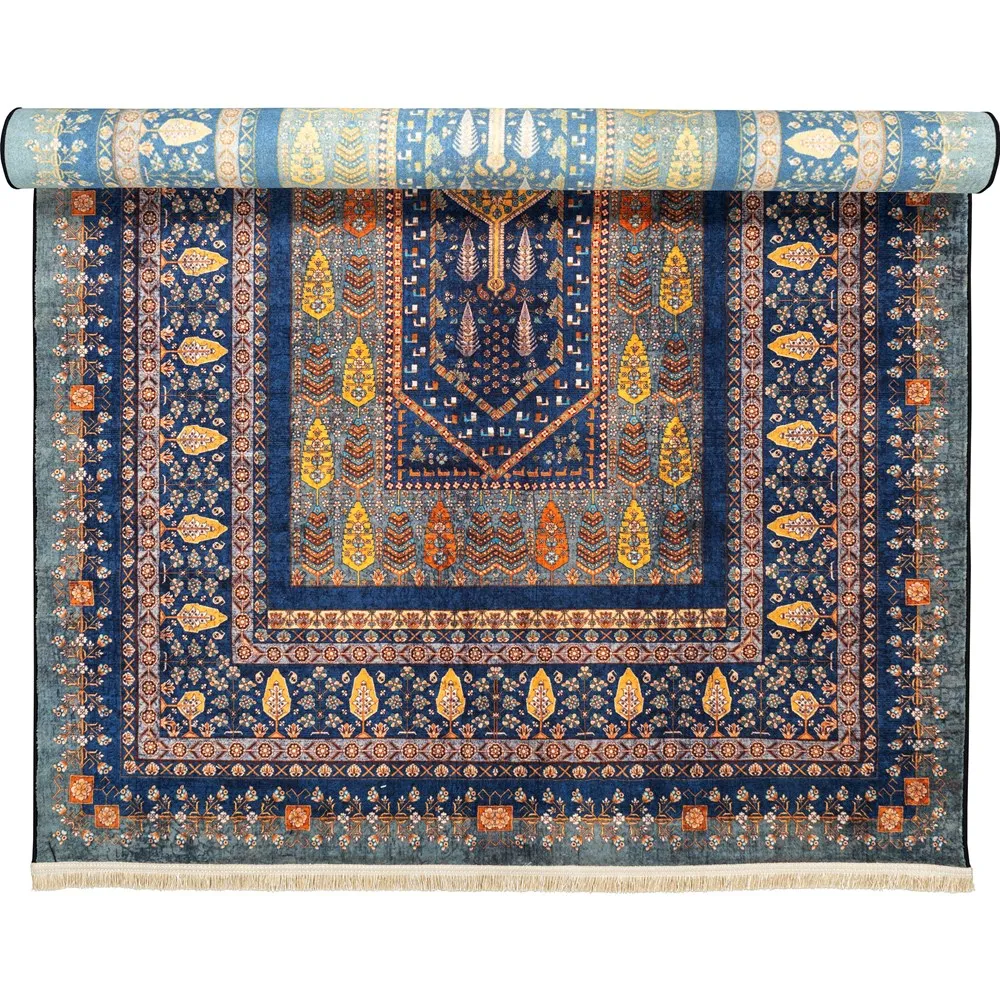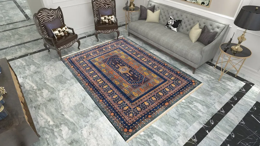 فرش محتشم 1000 شانه کلکسیون سنتی کد 901402 زمینه آبی (غیربرجسته)