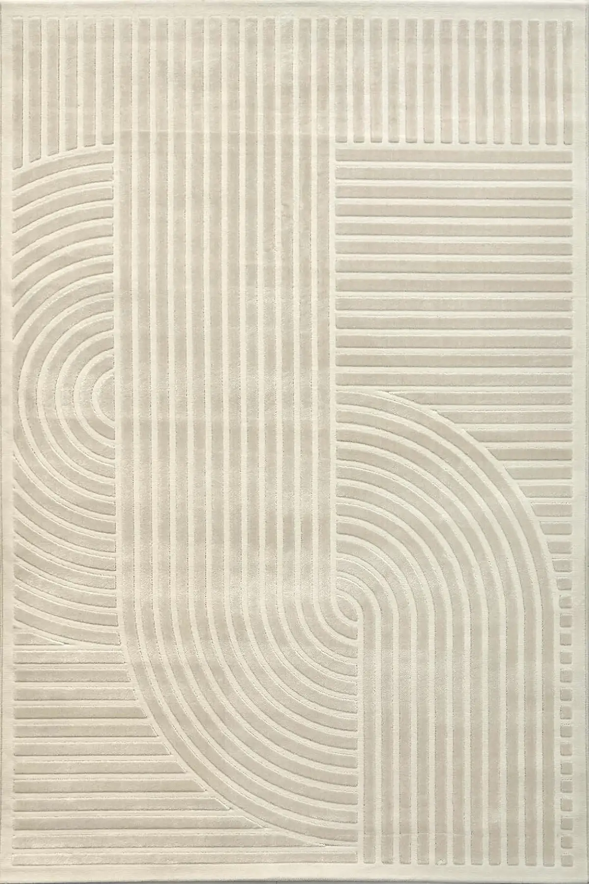 فرش مهدیان مدرن کلکسیون دووآ کد 9504 زمینه کرم (برجسته)