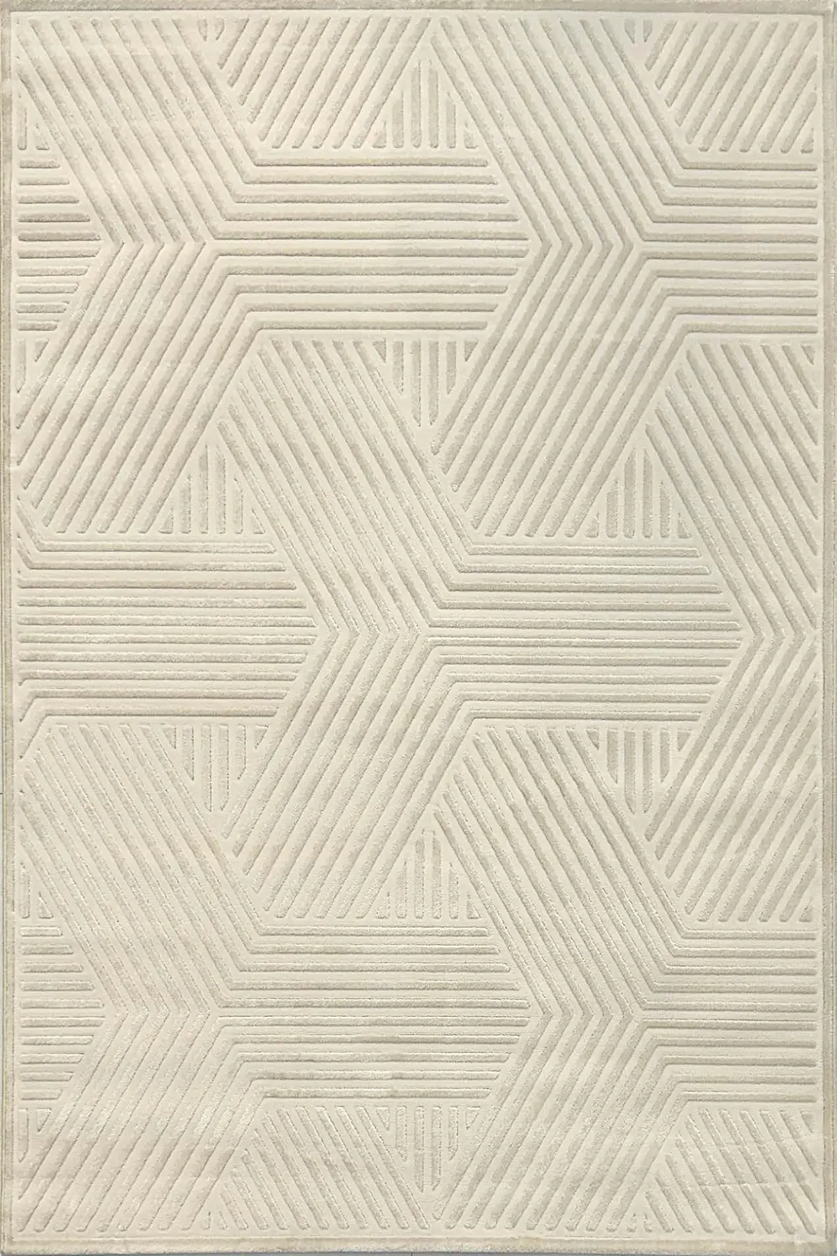 فرش مهدیان مدرن کلکسیون دووآ کد 9508 زمینه کرم (برجسته)
