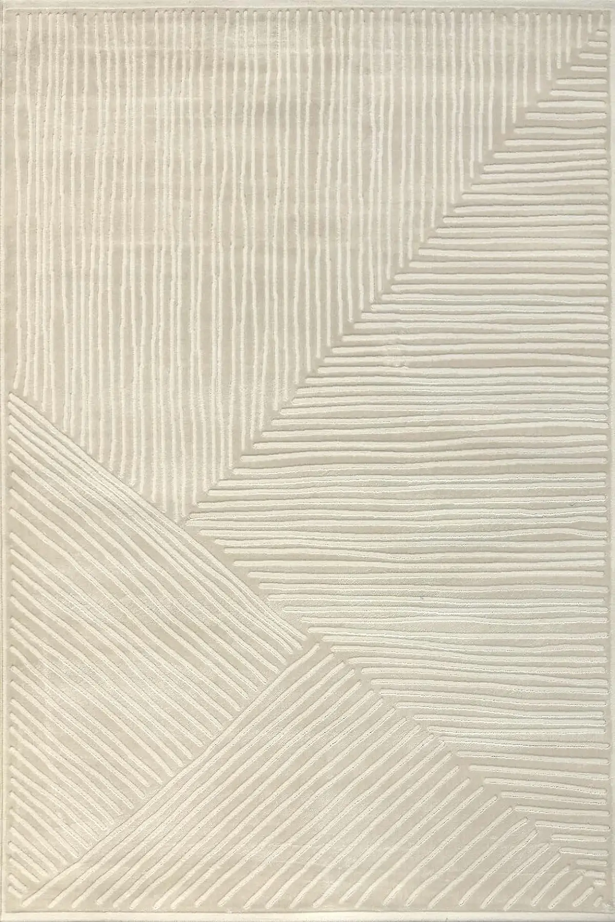 فرش مهدیان مدرن کلکسیون دووآ کد 9510 زمینه کرم (برجسته)