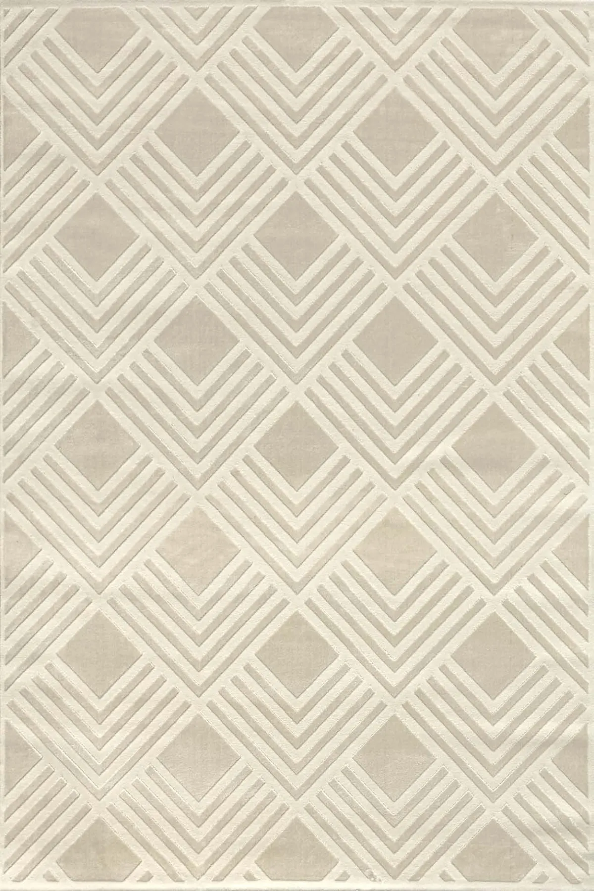 فرش مهدیان مدرن کلکسیون دووآ کد 9528 زمینه کرم (برجسته)