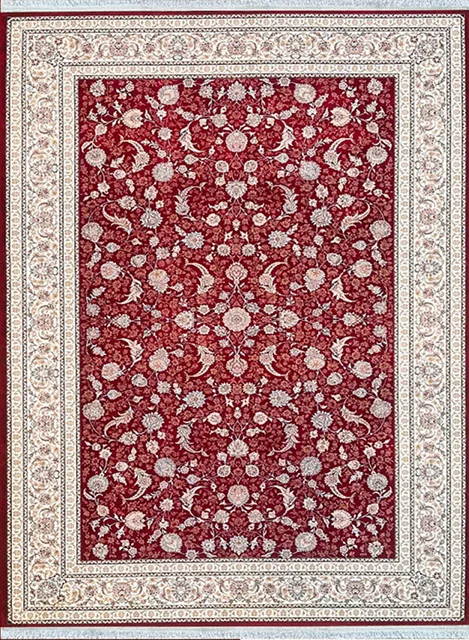فرش مهدیان 1200 شانه کد 12820 زمینه لاکی کرم (غیربرجسته)