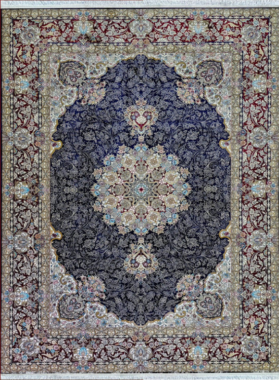 فرش مهدیان 1200 شانه کد 12824 زمینه سورمه ای (غیربرجسته)