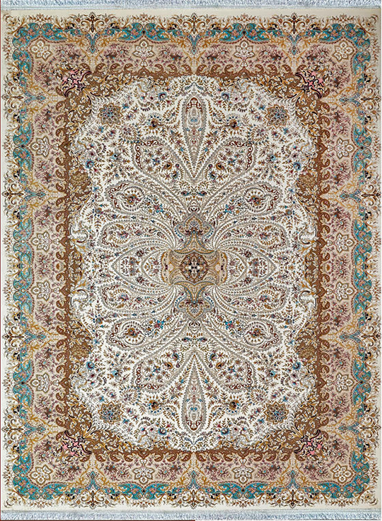 فرش مهدیان 1200 شانه کد 12845 زمینه کرم (غیربرجسته)