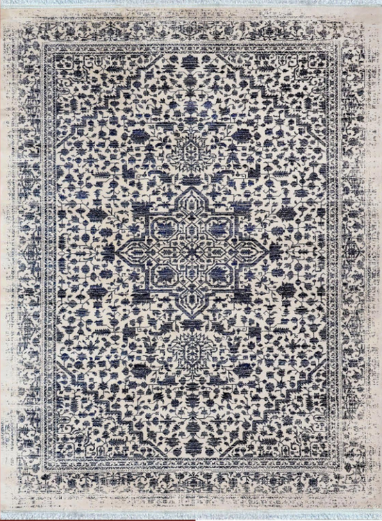 فرش مهدیان 1200 شانه کد 12850 زمینه بژ سورمه ای (غیربرجسته)