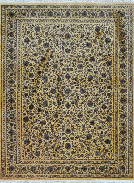 فرش مهدیان 1200 شانه کد 12864 زمینه طلایی سورمه ای (غیربرجسته)