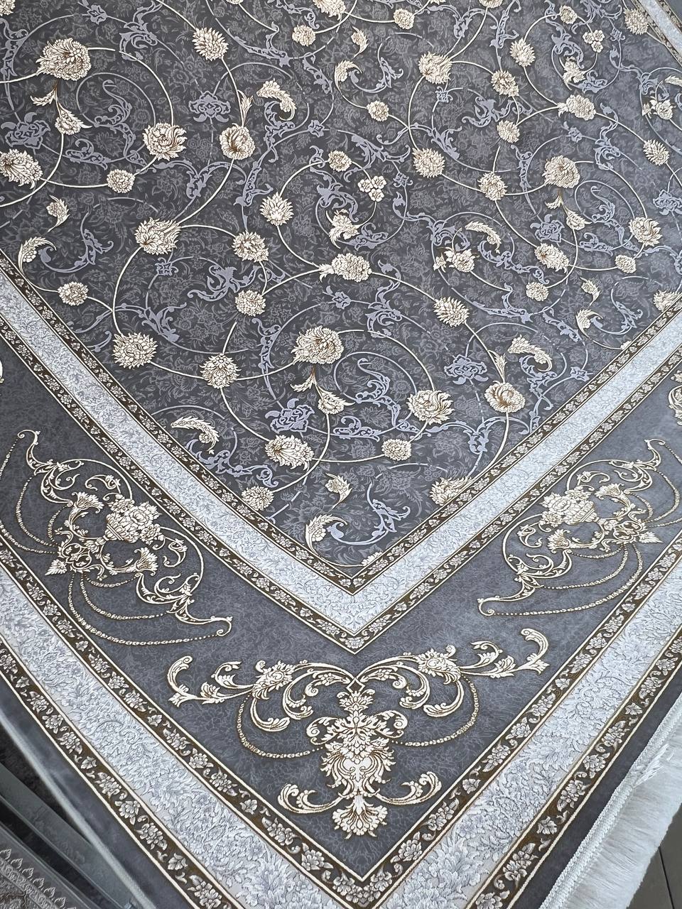 فرش مهدیان 1500 شانه طرح خاطره زمینه تیتانیوم (برجسته)