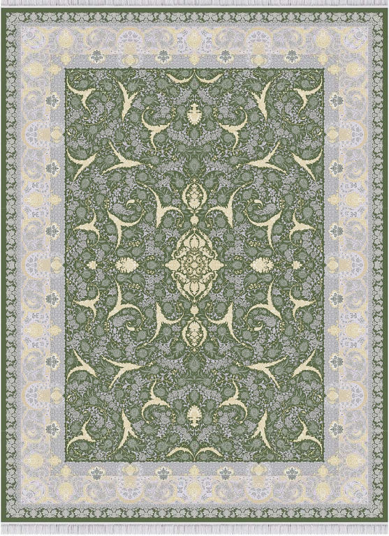 فرش مهدیان 1500 شانه طرح هستی زمینه سبز لجنی (برجسته)