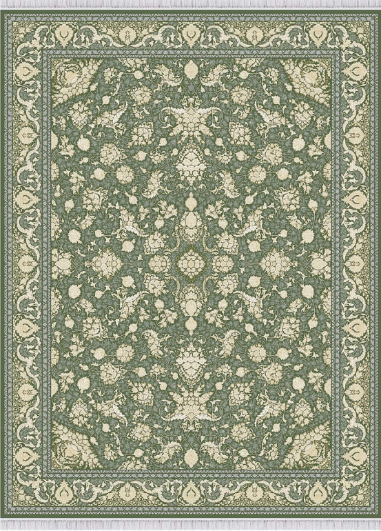 فرش مهدیان 1500 شانه طرح کارن زمینه سبز لجنی (برجسته)