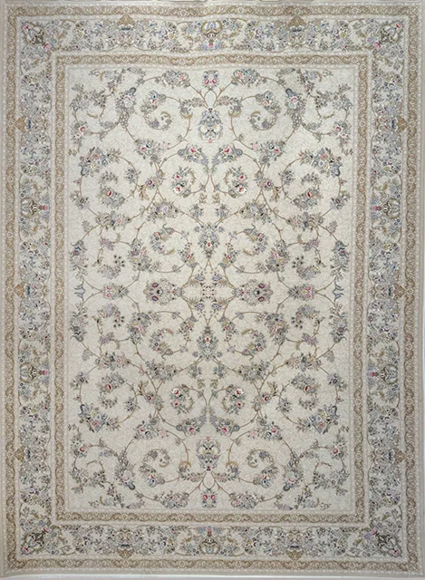 فرش مهدیان 1500 شانه کد 15107 زمینه کرم (برجسته) یکی از محصولات ممتاز برند مهدیان است که با تلفیق فناوری مدرن و هنر اصیل ایرانی بافته شده است. این فرش با تراکم بافت بسیار بالا، طرحی دقیق، ظریف و چشمنواز دارد که هر بینندهای را مجذوب خود میکند. ویژگی برجسته بودن نقوش باعث میشود طرح فرش جلوهای سهبعدی و زنده پیدا کند و در نور طبیعی جلوهای خاصتر داشته باشد.