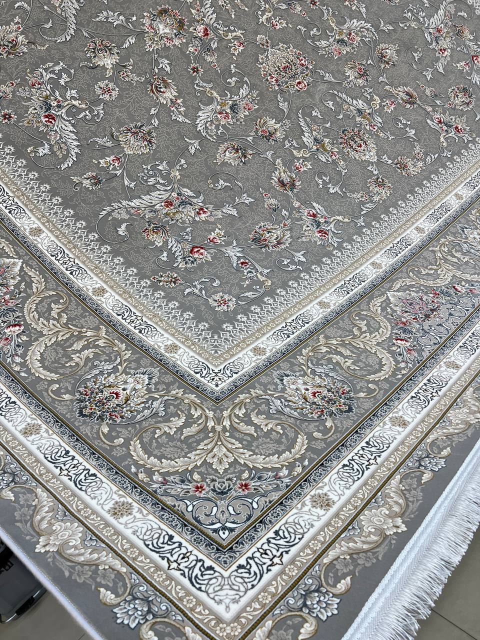 فرش مهدیان 1500 شانه کد 3012 زمینه طوسی (برجسته)
