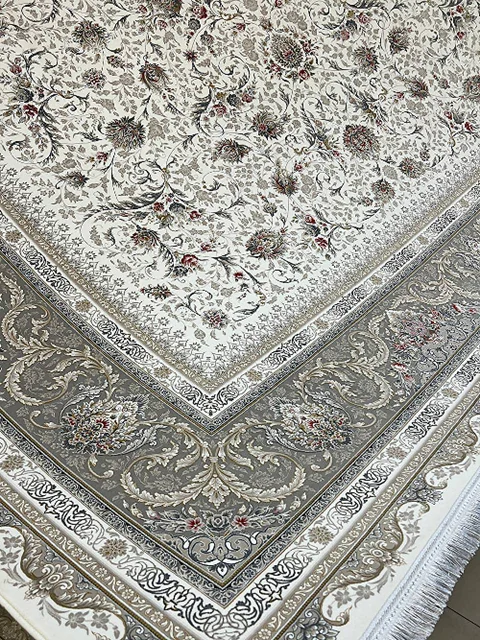 فرش مهدیان 1500 شانه کد 3015 زمینه کرم (برجسته)