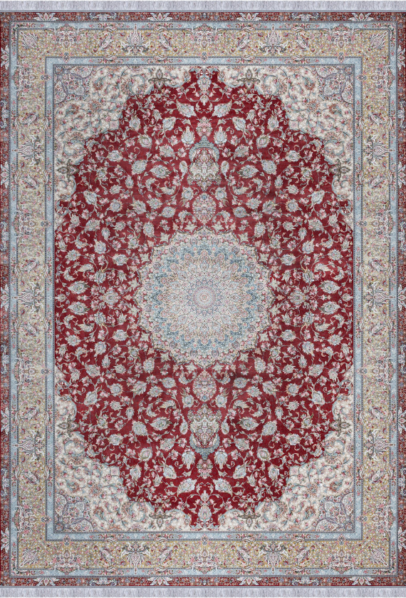 فرش مهدیان 1500 شانه کد 50204 زمینه لاکی (برجسته)