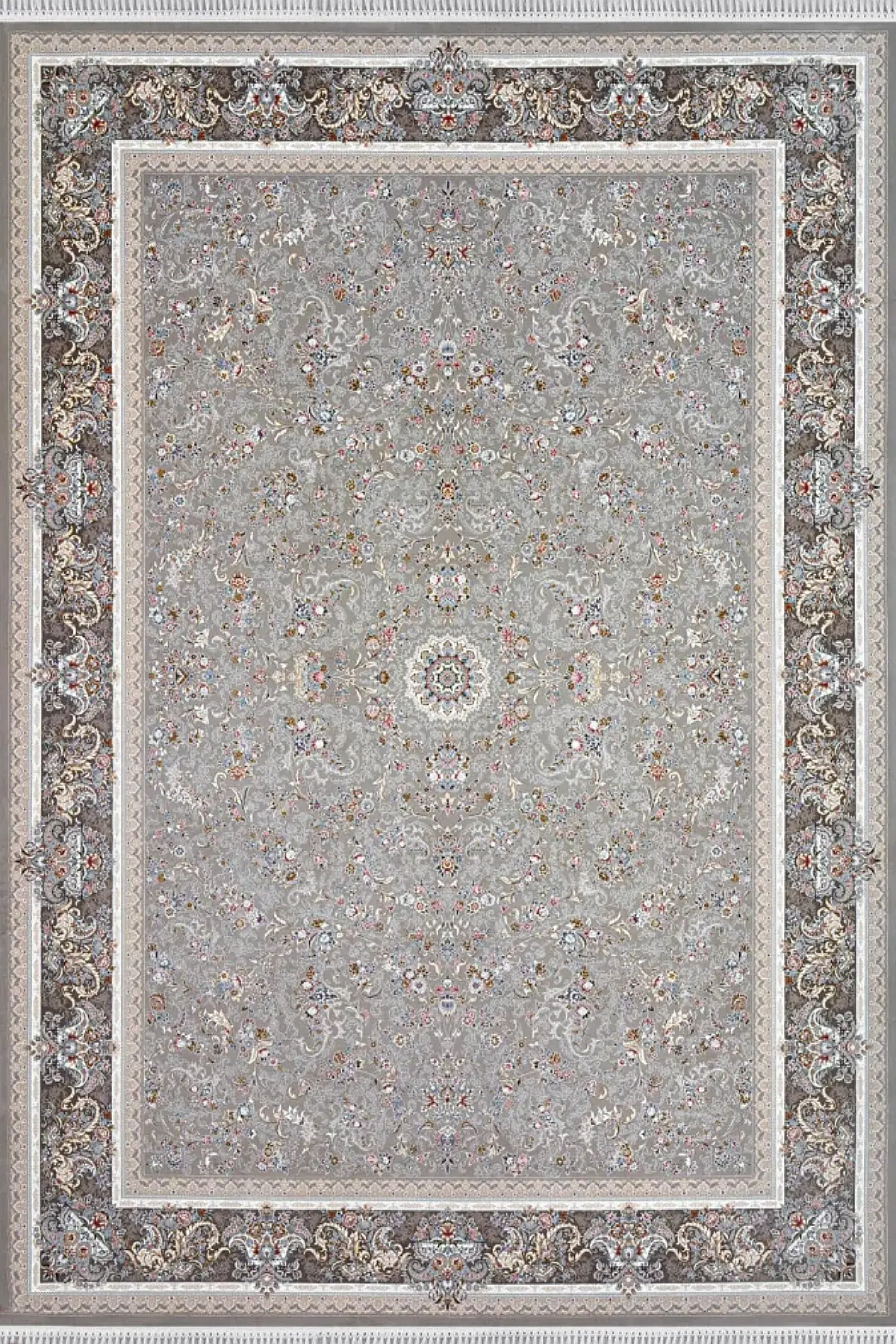 فرش مهدیان 1500 شانه کلکسیون مینیاتور کد 1702 زمینه خاکستری حاشیه نقره ای (برجسته)