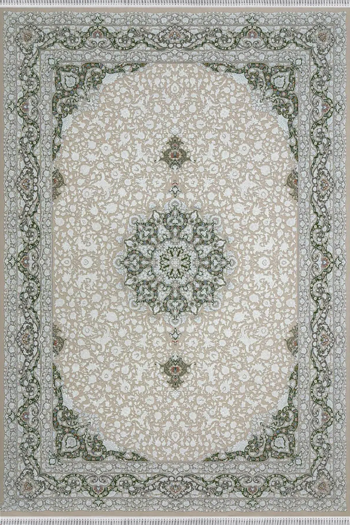 فرش مهدیان 1500 شانه کلکسیون مینیاتور کد 19201 زمینه صدفی حاشیه سبز (برجسته)