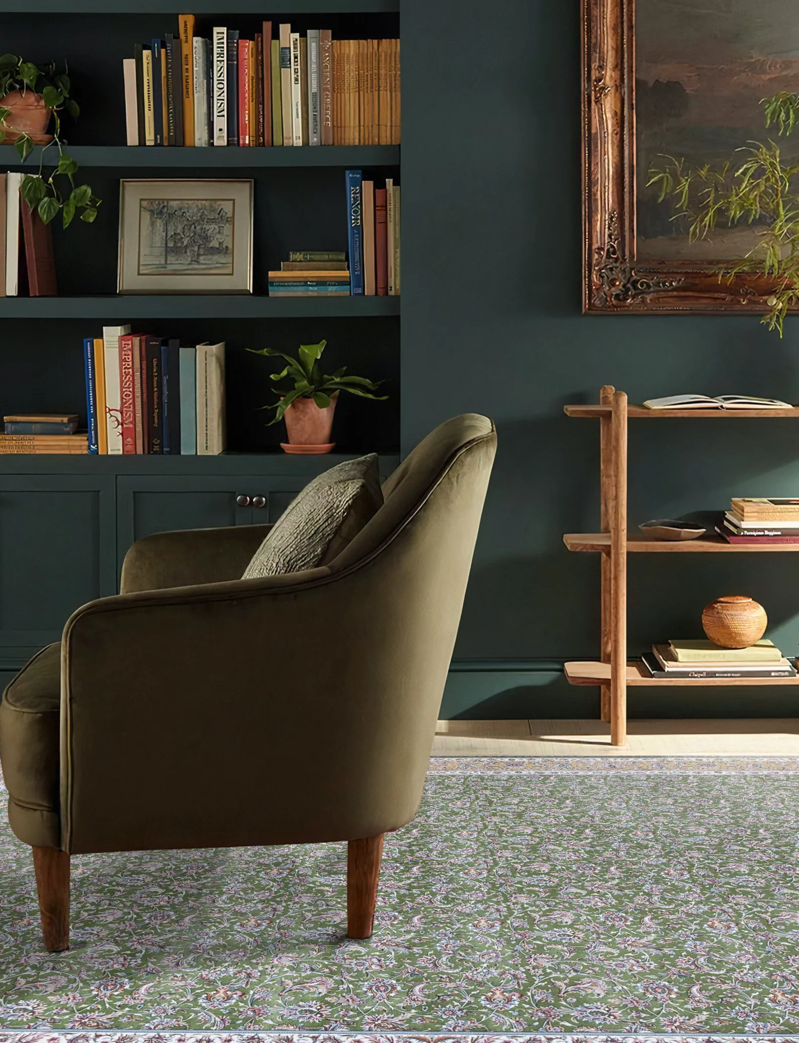 فرش مهدیان 1500 شانه کلکسیون والری کد 50405 زمینه سبز (برجسته)