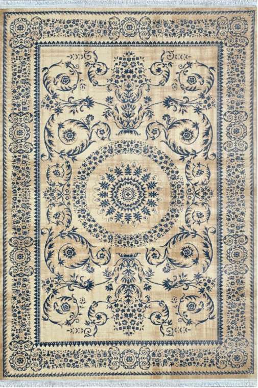 فرش مهدیان 400 شانه کد 43046 زمینه کرم-آبی (غیربرجسته)