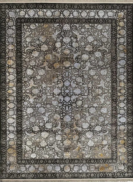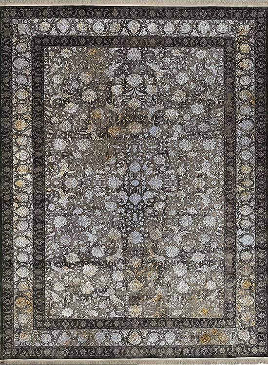 فرش مهدیان 700 شانه کد 70001 زمینه دودی-ذغالی (برجسته)
