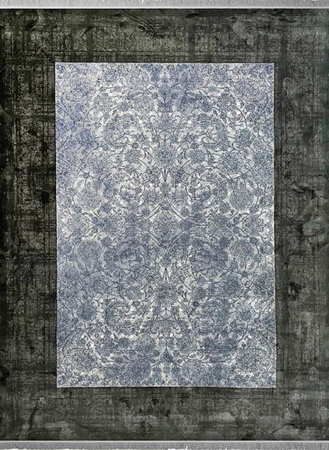 فرش مهدیان 700 شانه کد 70015 زمینه ذغالی-آبی (برجسته)
