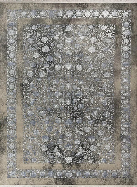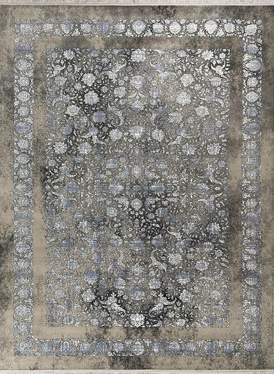 فرش مهدیان 700 شانه کد 70021 زمینه نقره ای-دودی (برجسته)