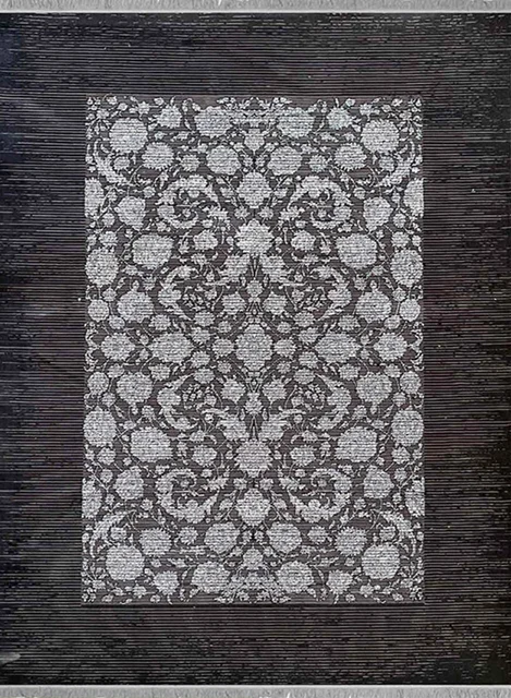 فرش مهدیان 700 شانه کد 70029 زمینه ذغالی-دودی (برجسته)