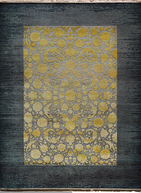 فرش مهدیان 700 شانه کد 70029 زمینه ذغالی-طلایی (برجسته)