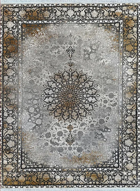 فرش مهدیان 700 شانه کد 70037 زمینه دودی-طلایی (برجسته)